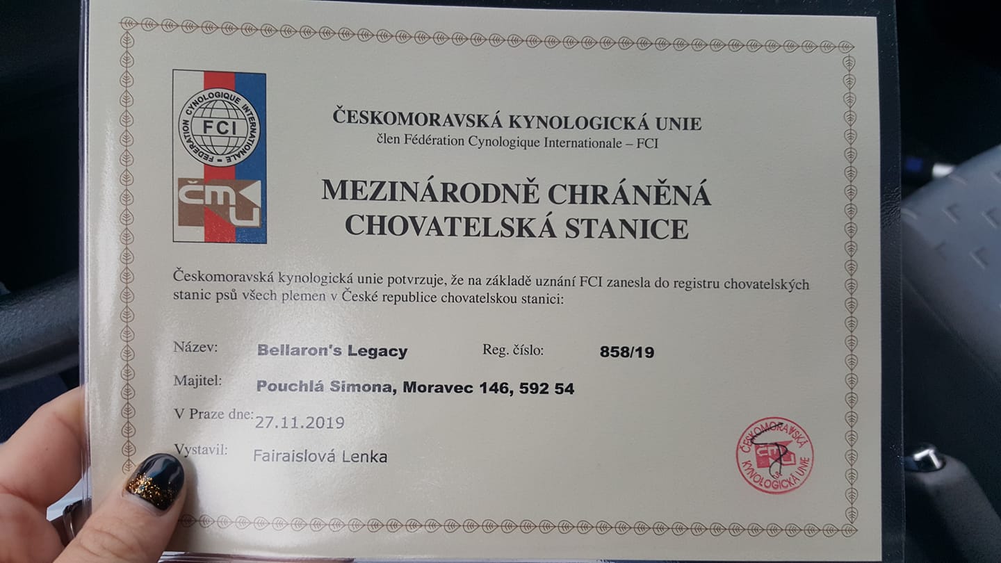 Máme zaregistrovanou chovatelskou stanici Bellaron's Legacy!